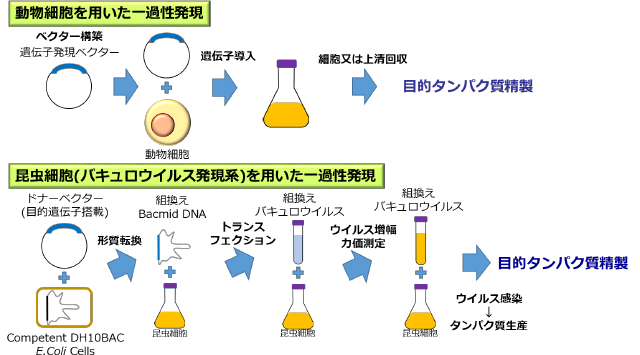 動物細胞、昆虫細胞(バキュロウイルス)を用いた一過性発現系