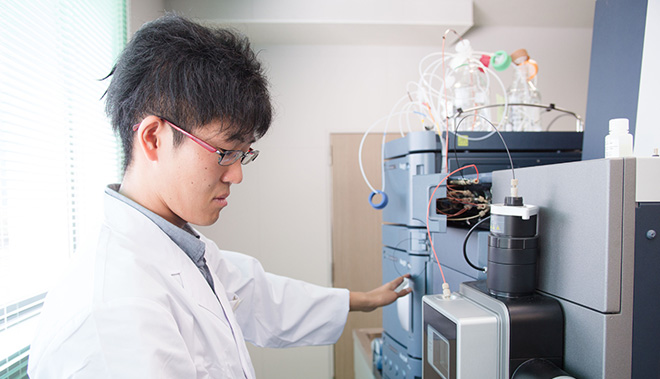 蜂産品の研究と開発ではトップレベルにあるアピ。したがって研究開発部門では最先端を行く研究と開発がおこなわれています。ローヤルゼリーやプロポリスの成分分析や有効性の検証(つまりどの成分が何に効くかの追究)、それを活かした製品開発、製品化に必要なデータの収集、資料作成など、仕事は多岐にわたり、特許につながる研究も少なくありません。最先端の研究だけに学会での研究発表や学会誌へ論文の執筆なども求められます。抗ガン作用や免疫力の強化などの効果が認められるとして健康食品だけでなく医薬品関連でも注目を集めるローヤルゼリーやプロポリスですが、その結果、私たちの研究開発に対する期待がさらに増しています。